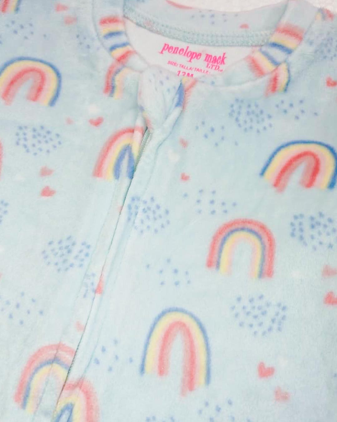 Soft Fleece Baby Zip Romper – Pastel Rainbow Print