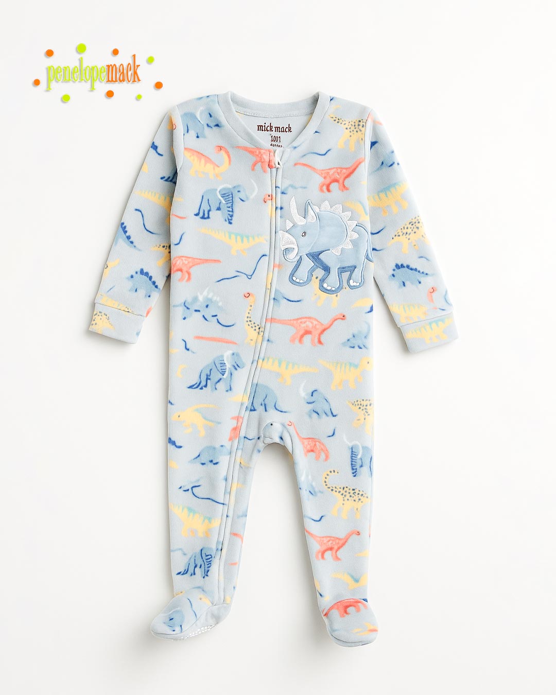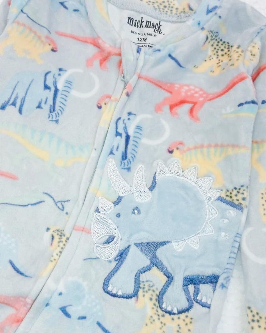 Made from plush fleece fabric, this romper keeps your baby warm and snuggly during naps, bedtime, and play. The adorable embroidered triceratops patch adds a charming 3D detail, while the full-length diagonal zipper allows quick and hassle-free outfit changes. Built-in footies with anti-slip grips ensure extra safety for active little feet.