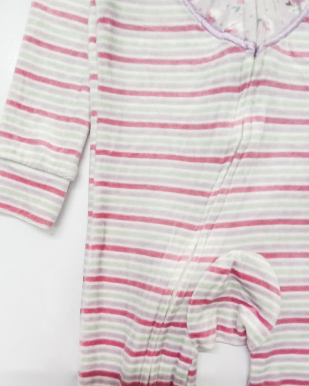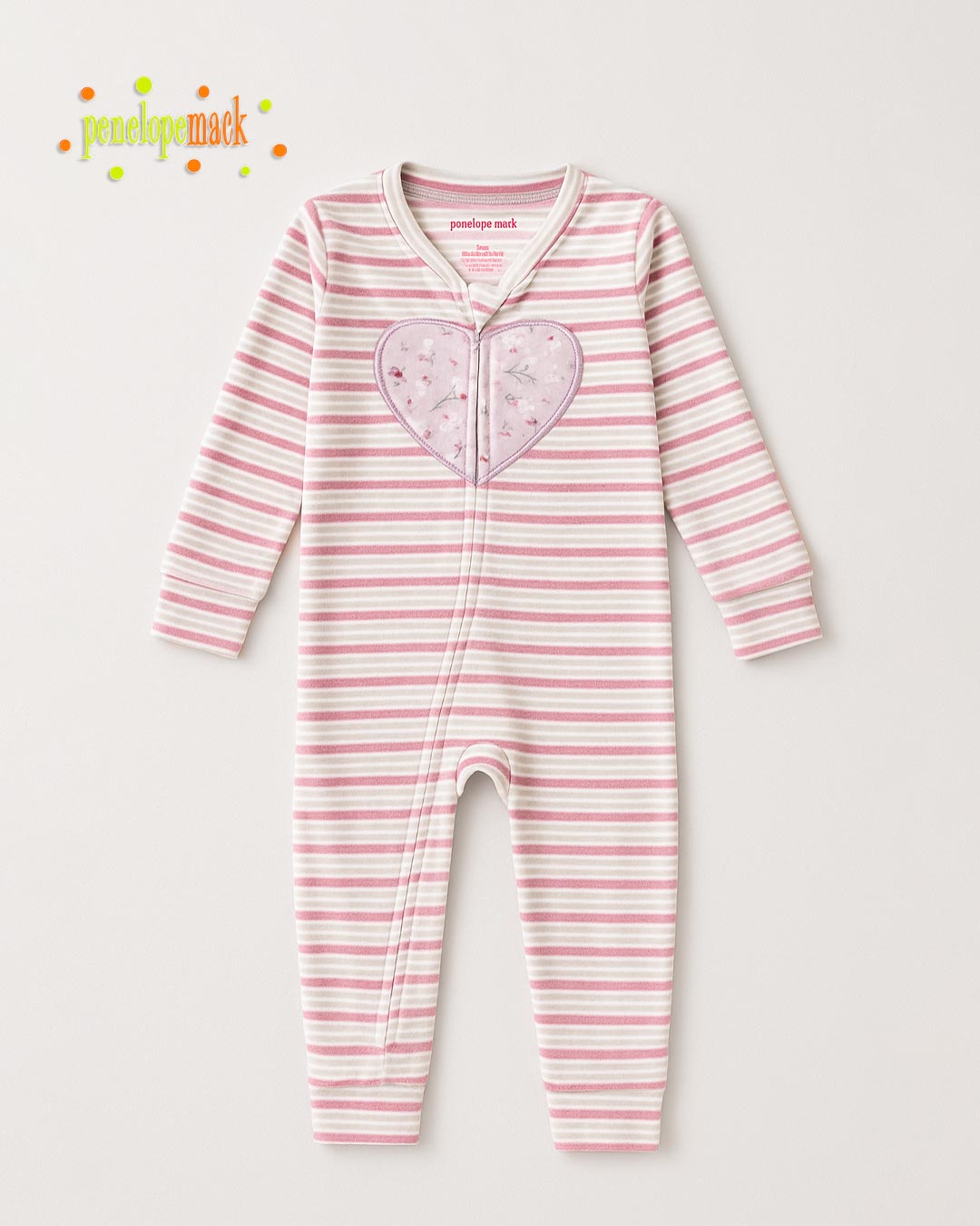 Wrap your little one in comfort with this adorable striped plush romper, designed for all-day coziness and easy wear. Crafted from soft, breathable fabric, it features a charming heart appliqué at the front and a smooth front zipper for quick changes. The gentle pastel stripes add a sweet, timeless look, while the snug ribbed cuffs at sleeves and legs ensure a comfortable fit without riding up. Perfect for lounging, playtime, or sleep, this romper keeps your baby warm and comfy in every moment.
