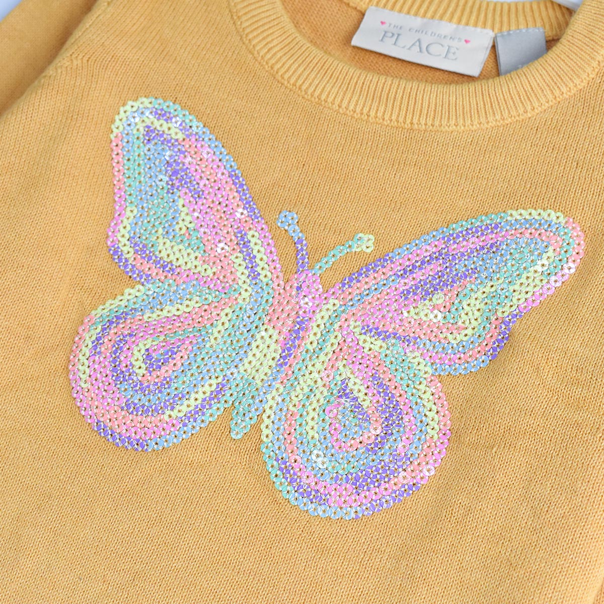PLACE PASTEL ORANGE SEQUINED BUTTERFLY JUMPER