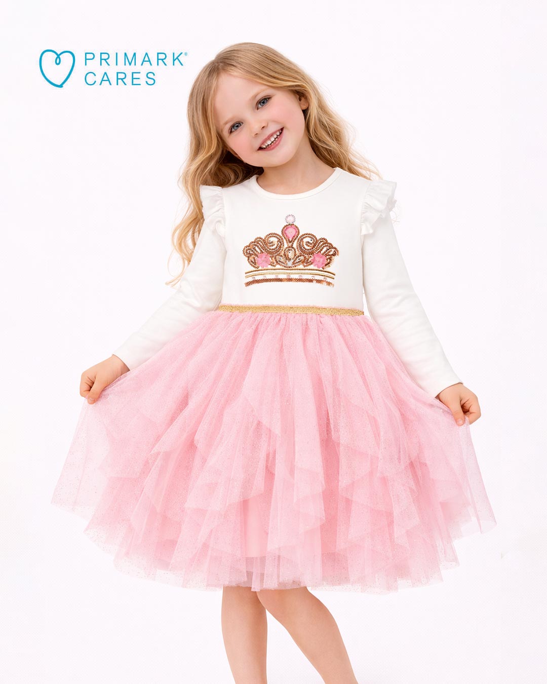 Fit for your little princess ✨ The Princess Crown Sparkle Tulle Dress is designed to make every moment feel magical. Featuring a soft ivory knit bodice with delicate flutter sleeves and a beautiful embellished crown motif, this dress adds a royal touch to your child’s special days.