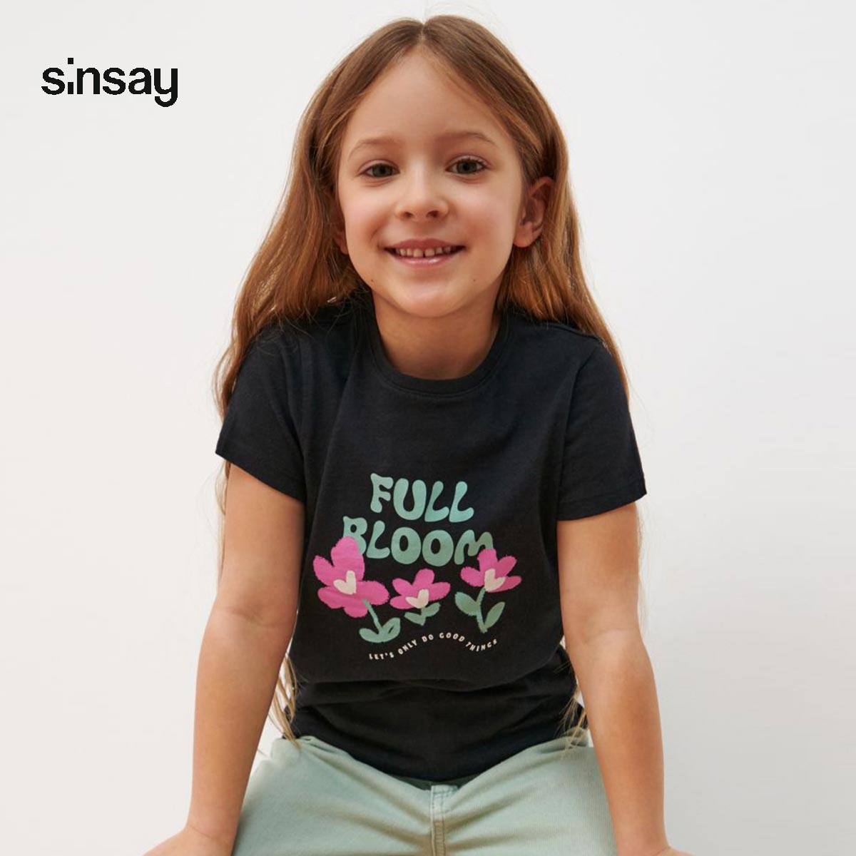 SINSAY BLACK BLOOM PRINTED T-SHIRT