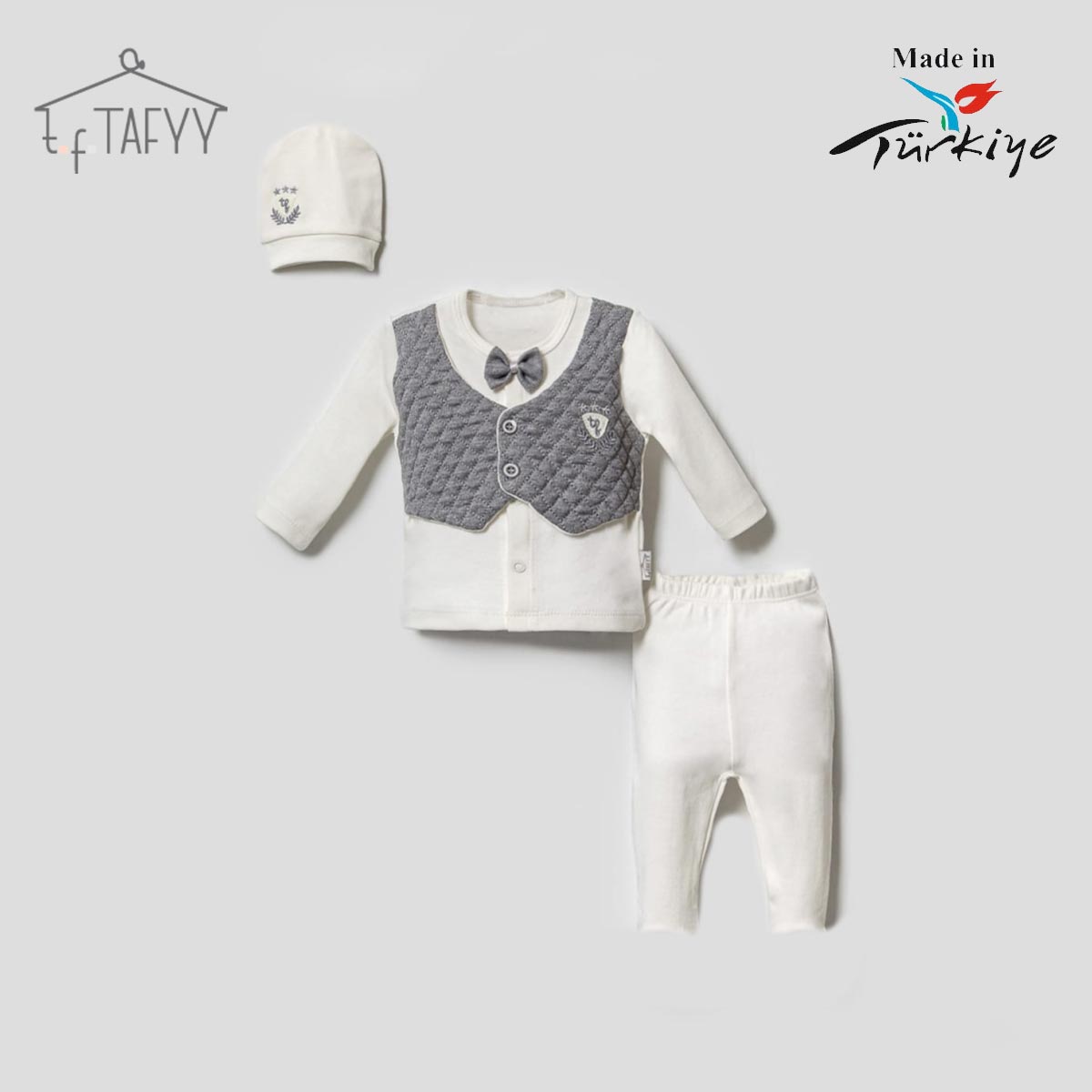 T.F TAFYY GREY QUILTED 3PCS SET WITH BOW