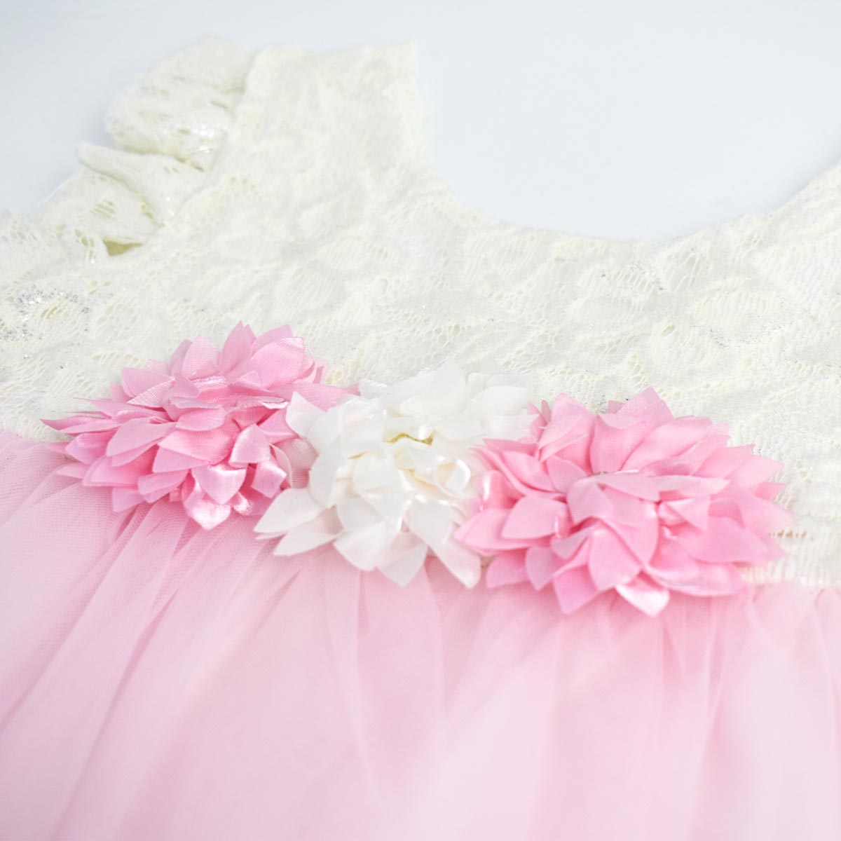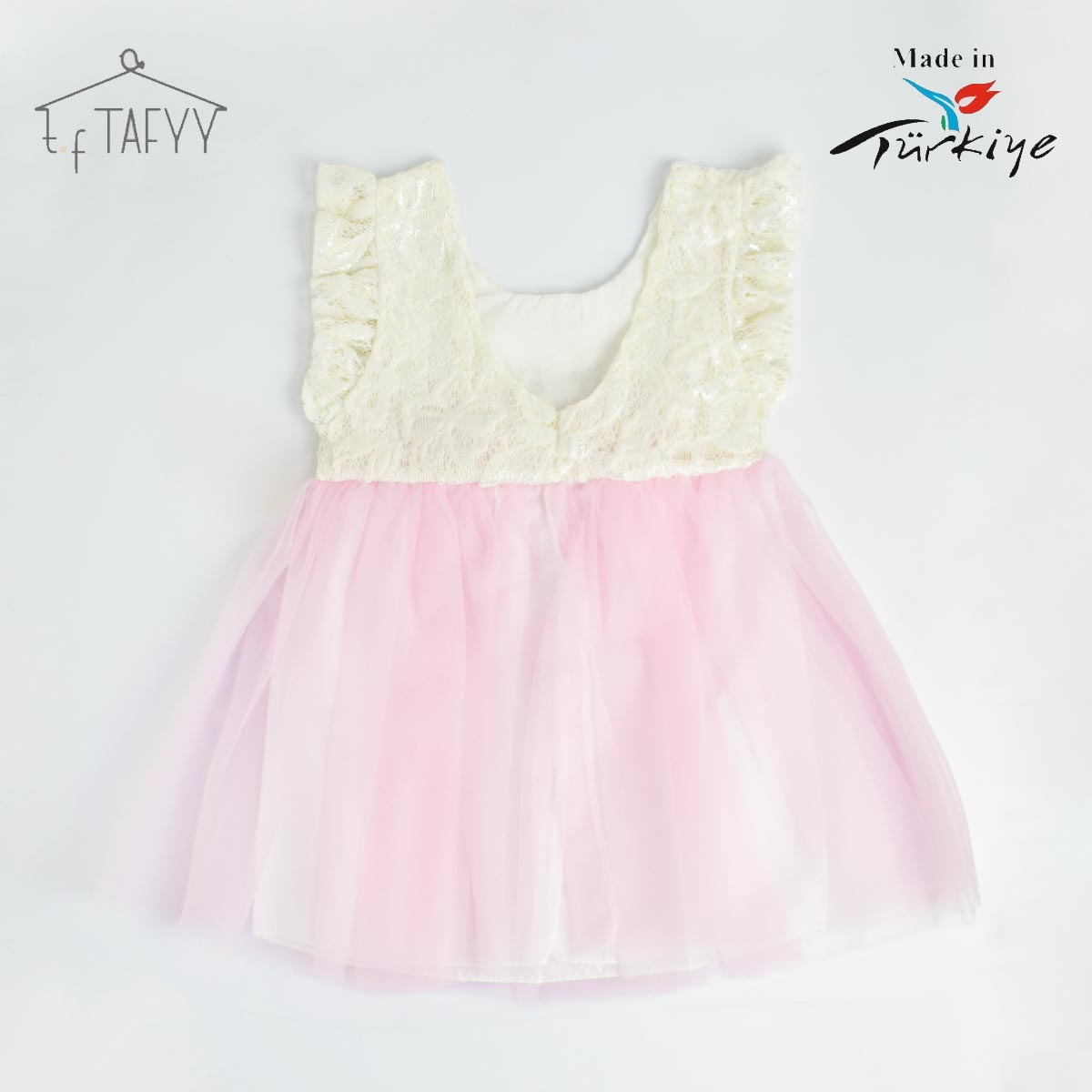 DESCRIPTION Tulle Dress with Sequins at top featuring Flower with shiny lace and a flared skirt with multiple layers of tulle.