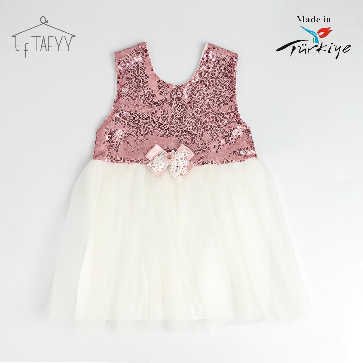 T.F. TAFYY ROSE PINK SEQUINED FRILLED FROCK