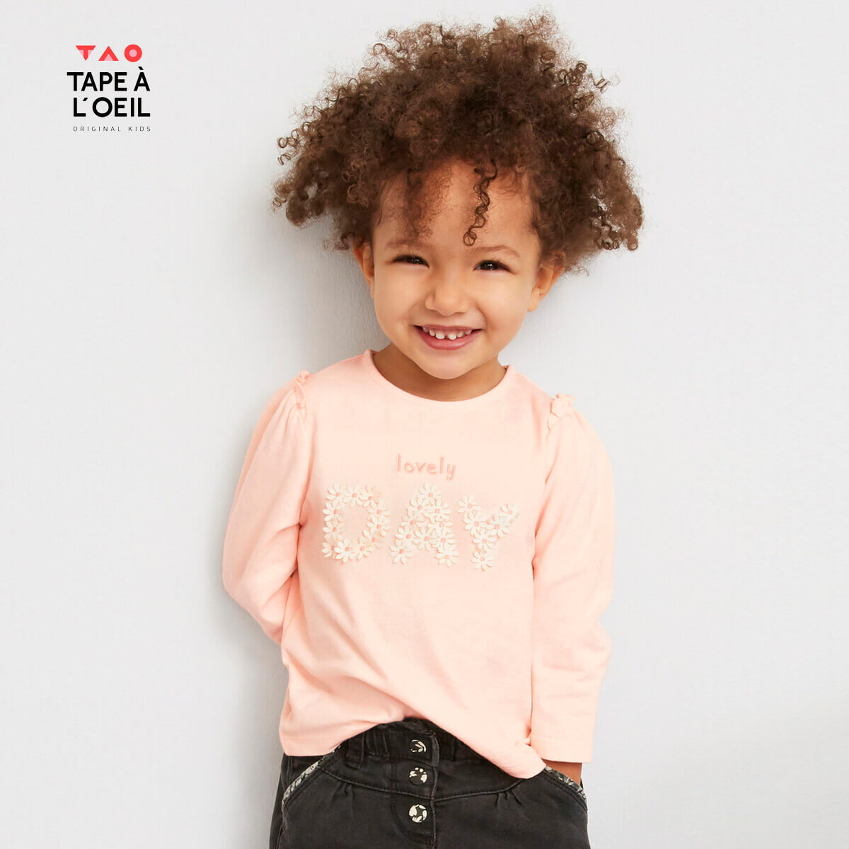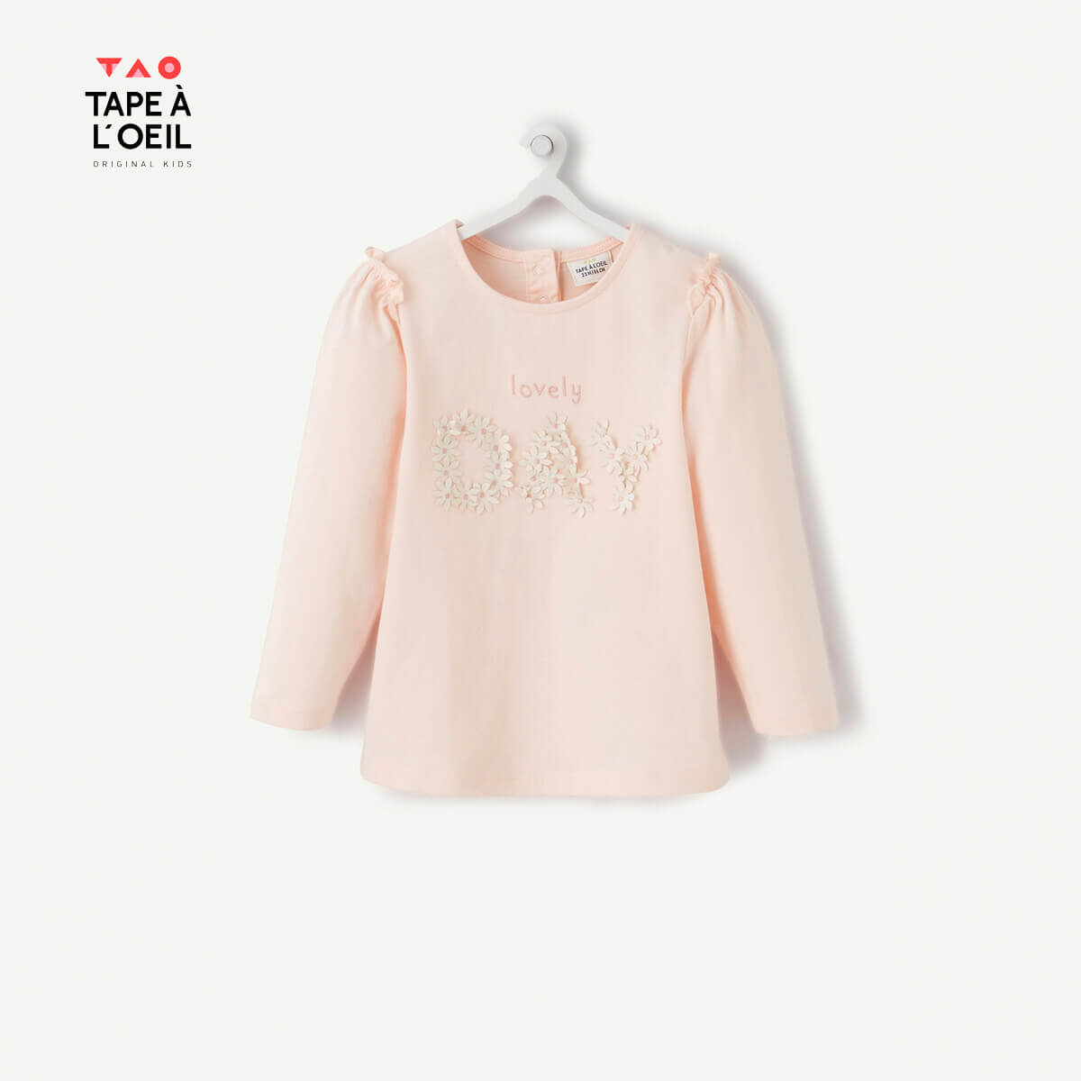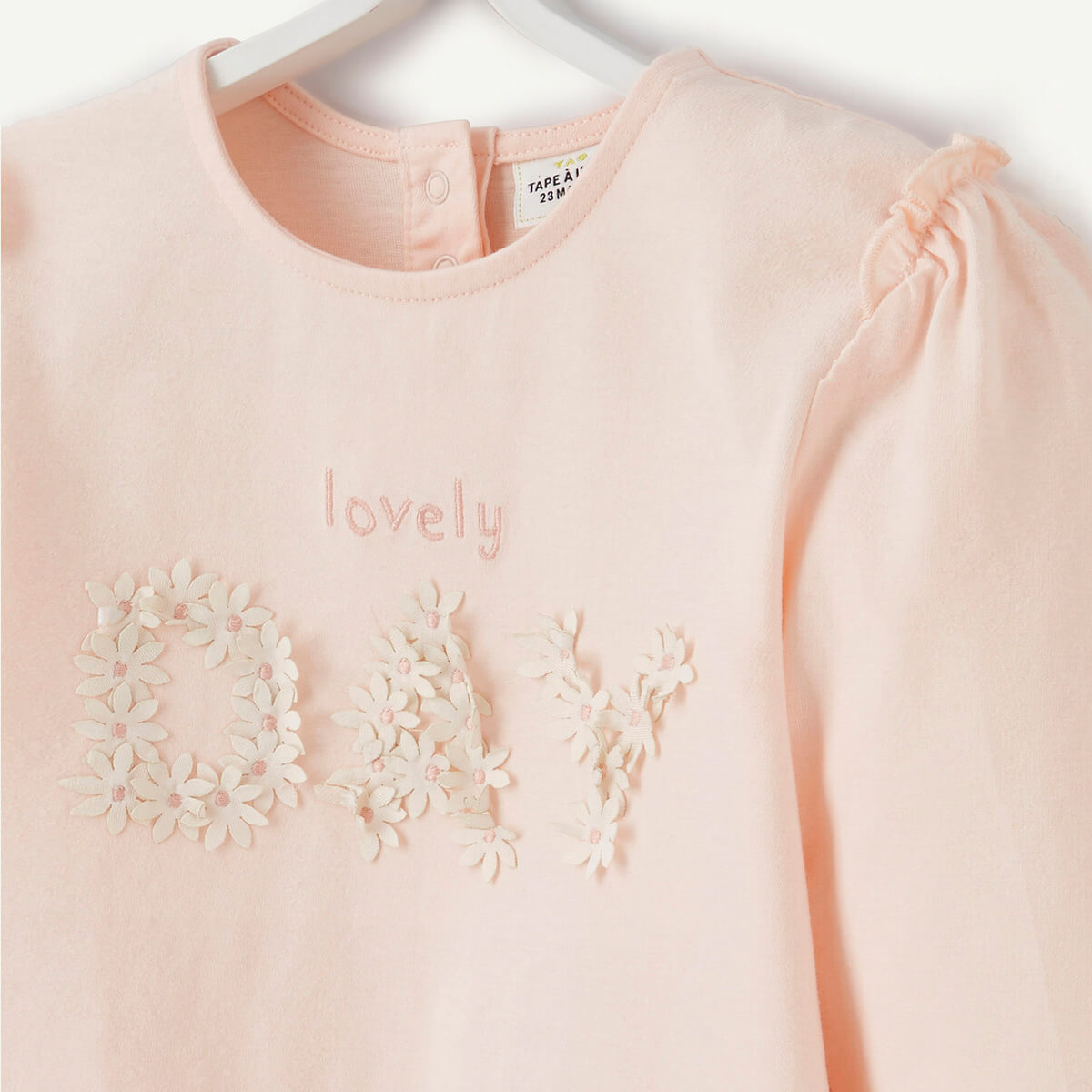 TAO PINK ORGANIC COTTON T-SHIRT WITH HAPPY DAY EMBOSSED