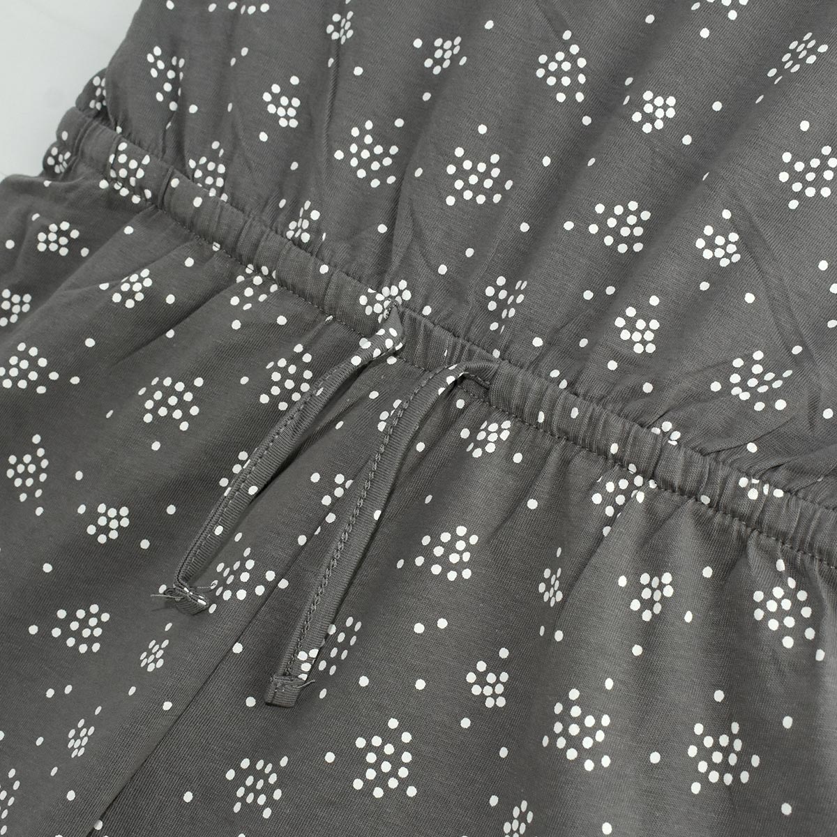 Details In the most beautiful summer colors! Grey jumpsuit with brightly colored. Cap sleeves and straight neckline with smocked section for a good fit. Airy cut with short legs. Elastic waist with drawstring and tie.
