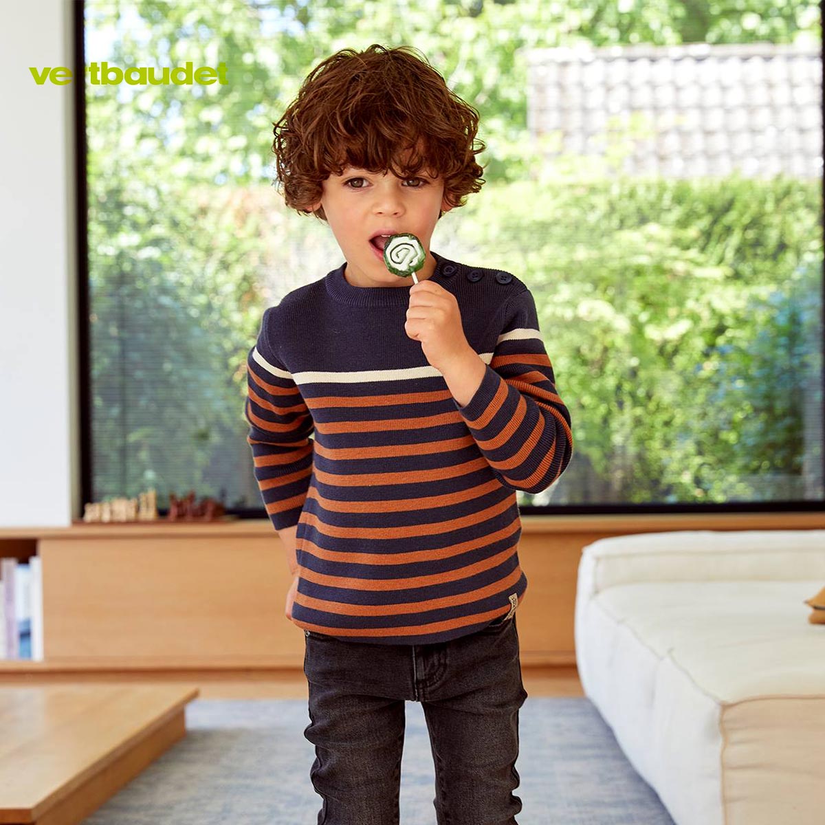• Let the stylish little looks set sail and revisit the sailor-style jumper! We have added a touch of colour to liven up the stripes, a small detail to win you over... As warm as is necessary, it is easy to team and it's the perfect jumper this season! Small perk: buttons on the shoulder make it easy to slip on. Striped jumper for boys