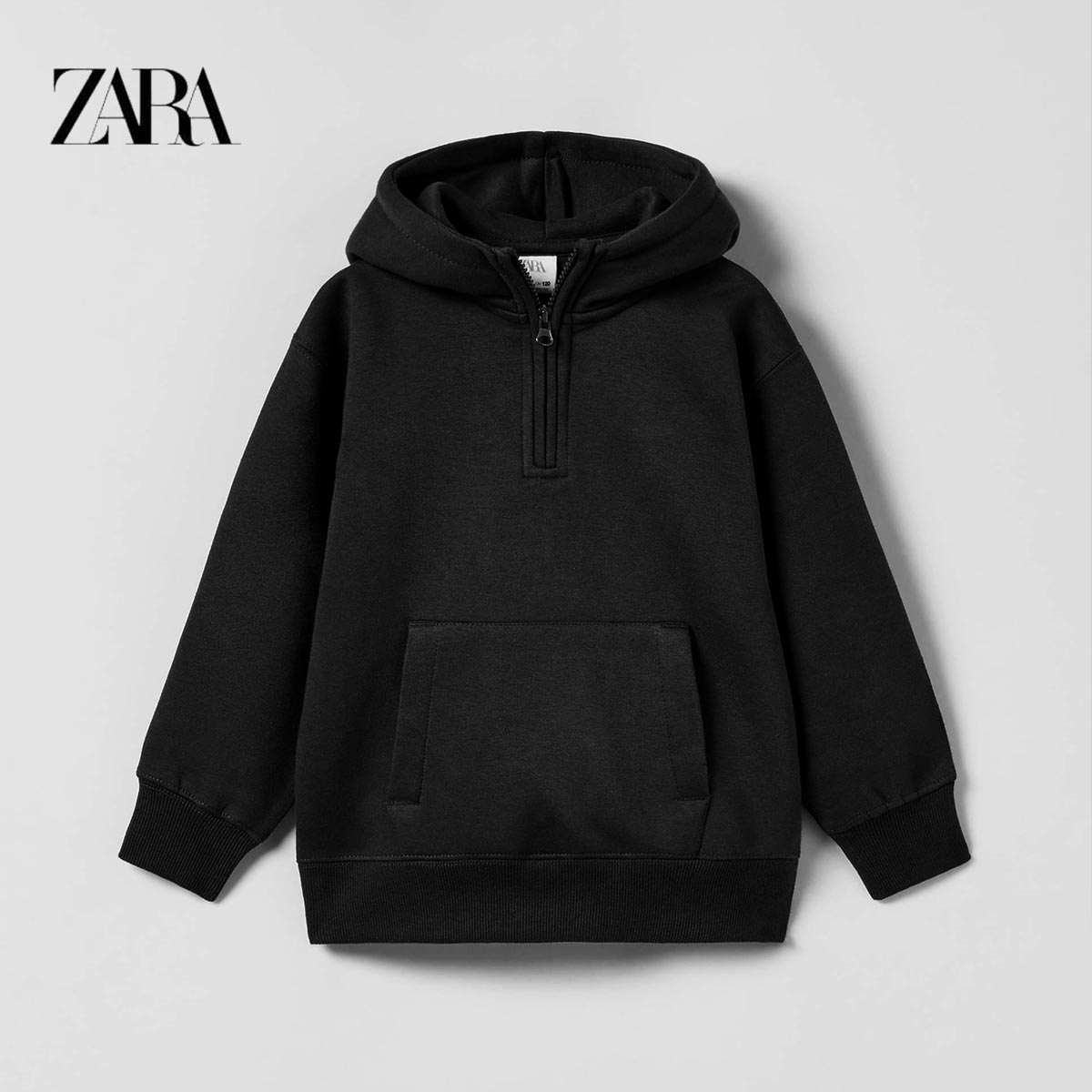 ZARA BLACK HOODED SWEATSHIRT WITH ZIP