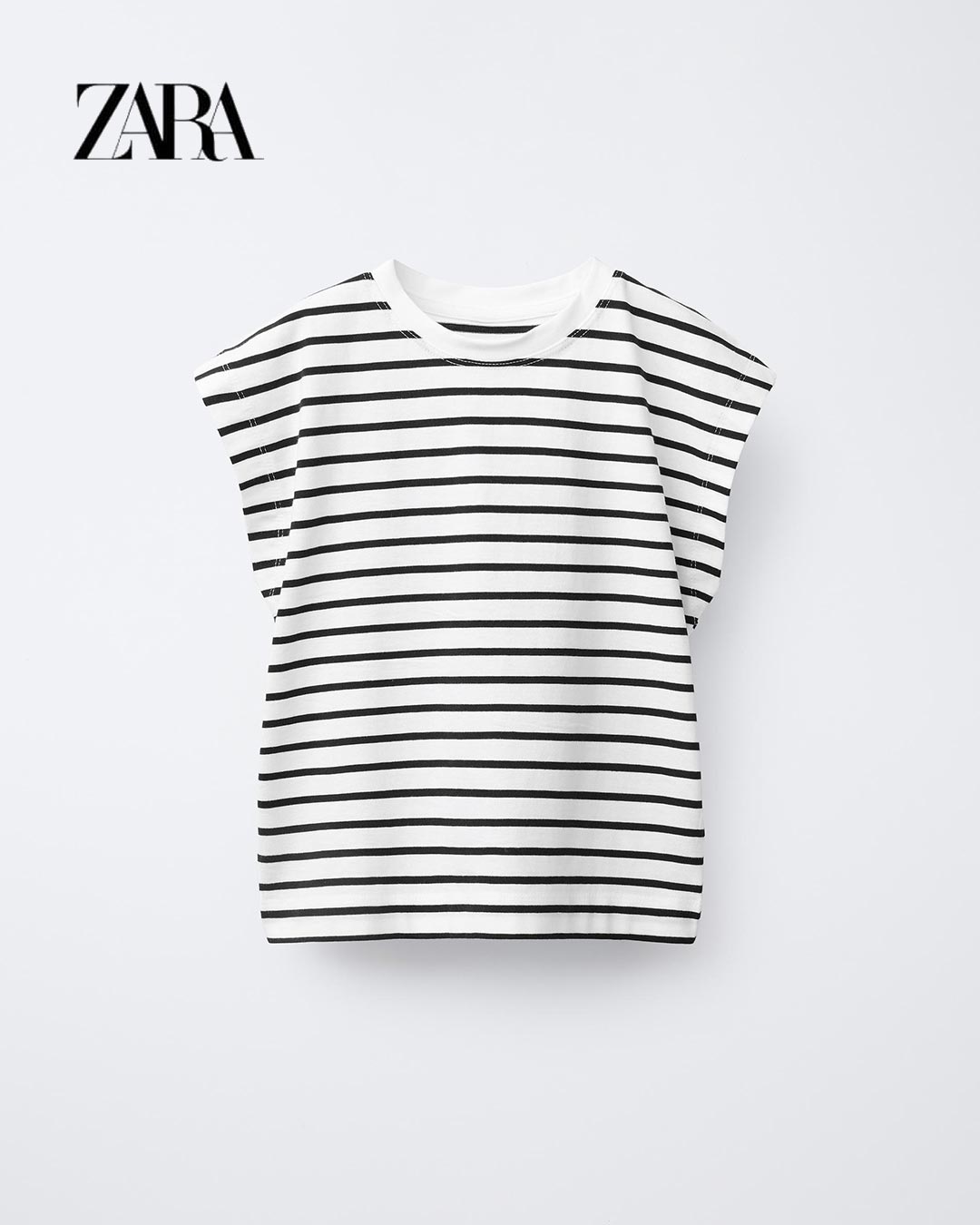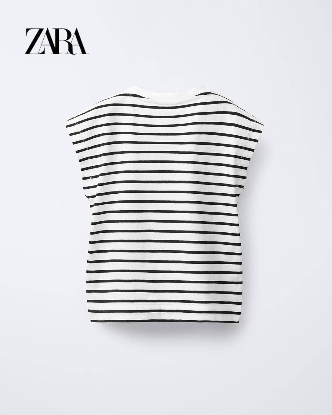 ZARA BLACK STRIPED T-SHIRT WITH TAB