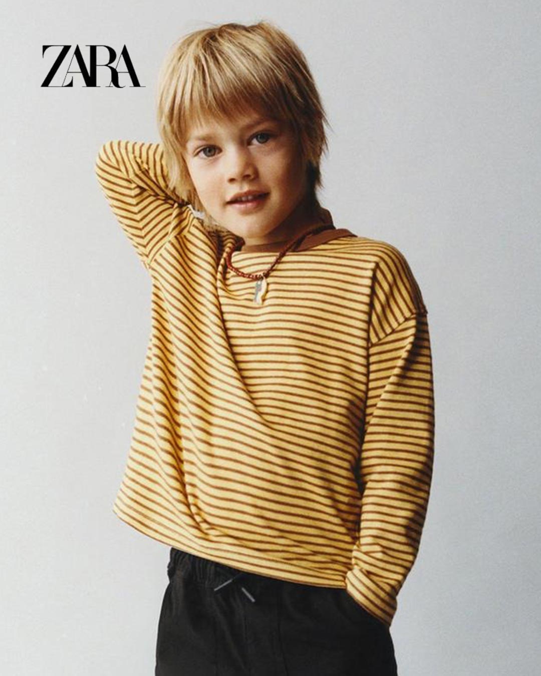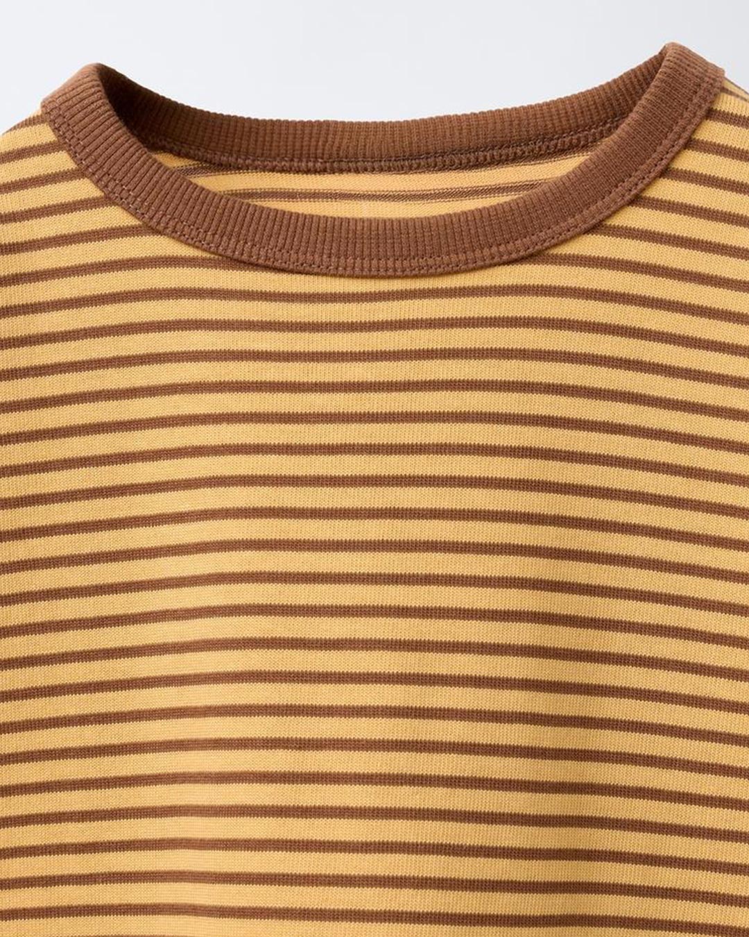 Long sleeve T-shirt with a round ribbed neck in a contrasting colour. Embroidered text detail on the side. Striped print.