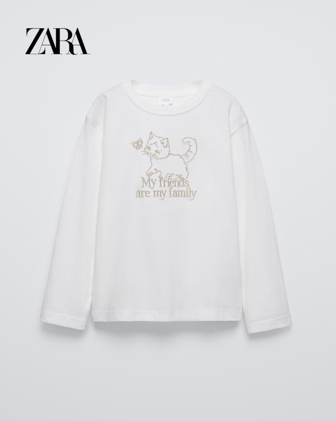 T-shirt with a round neck and long sleeves. Embroidery on the front and back.