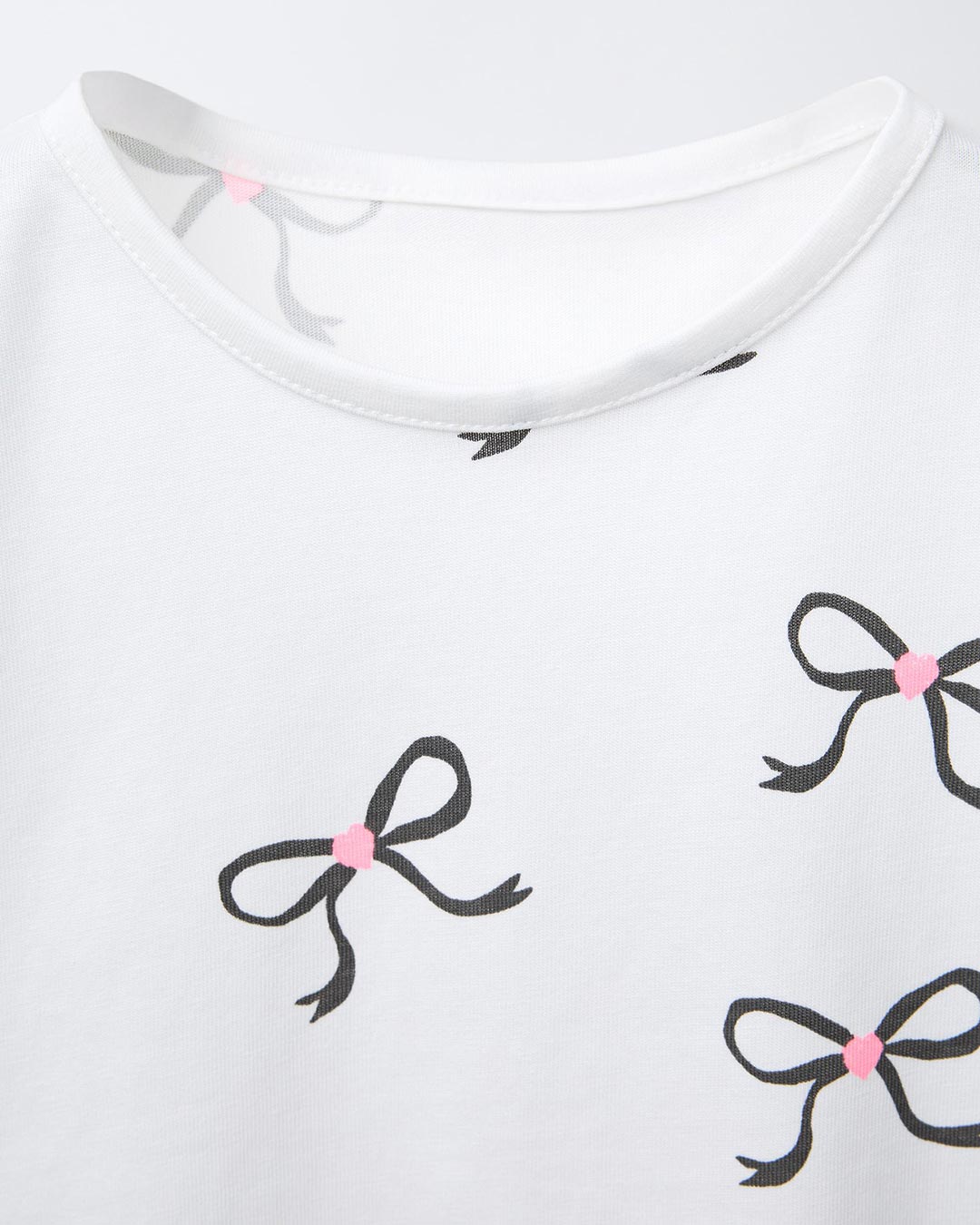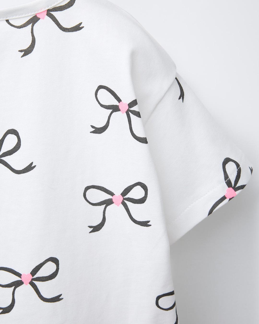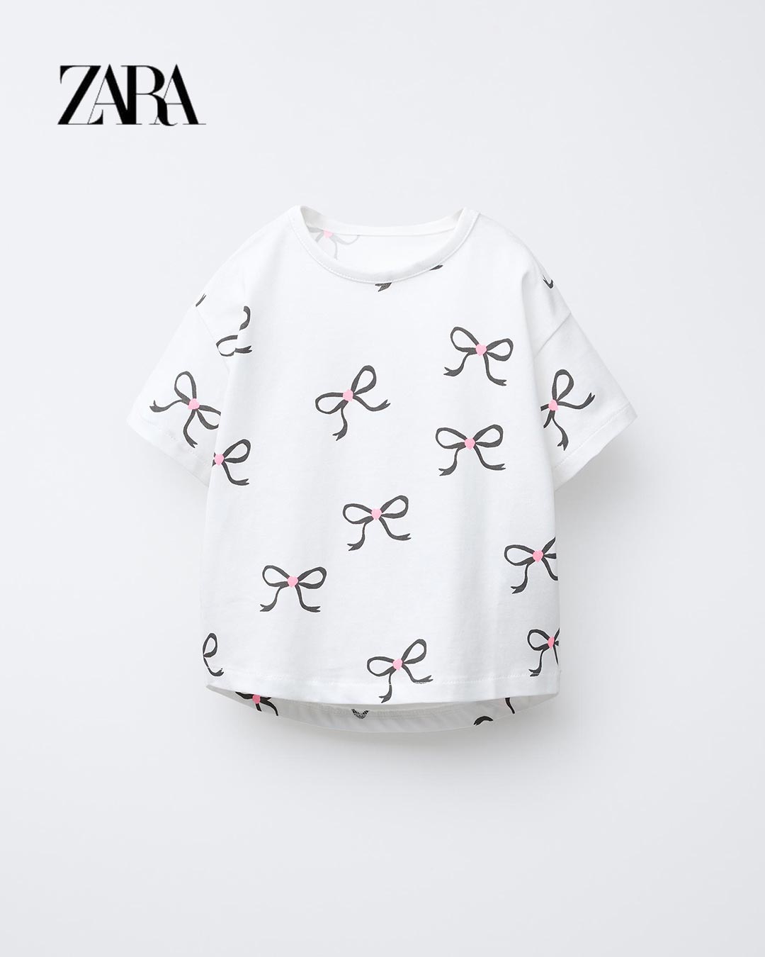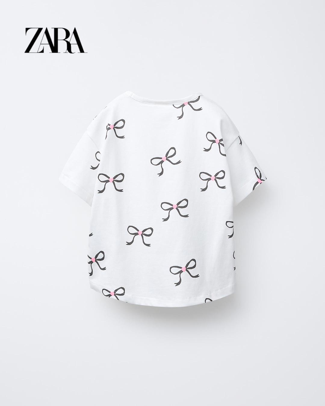 ZARA OYSTER WHITE BOW PRINTED T-SHIRT