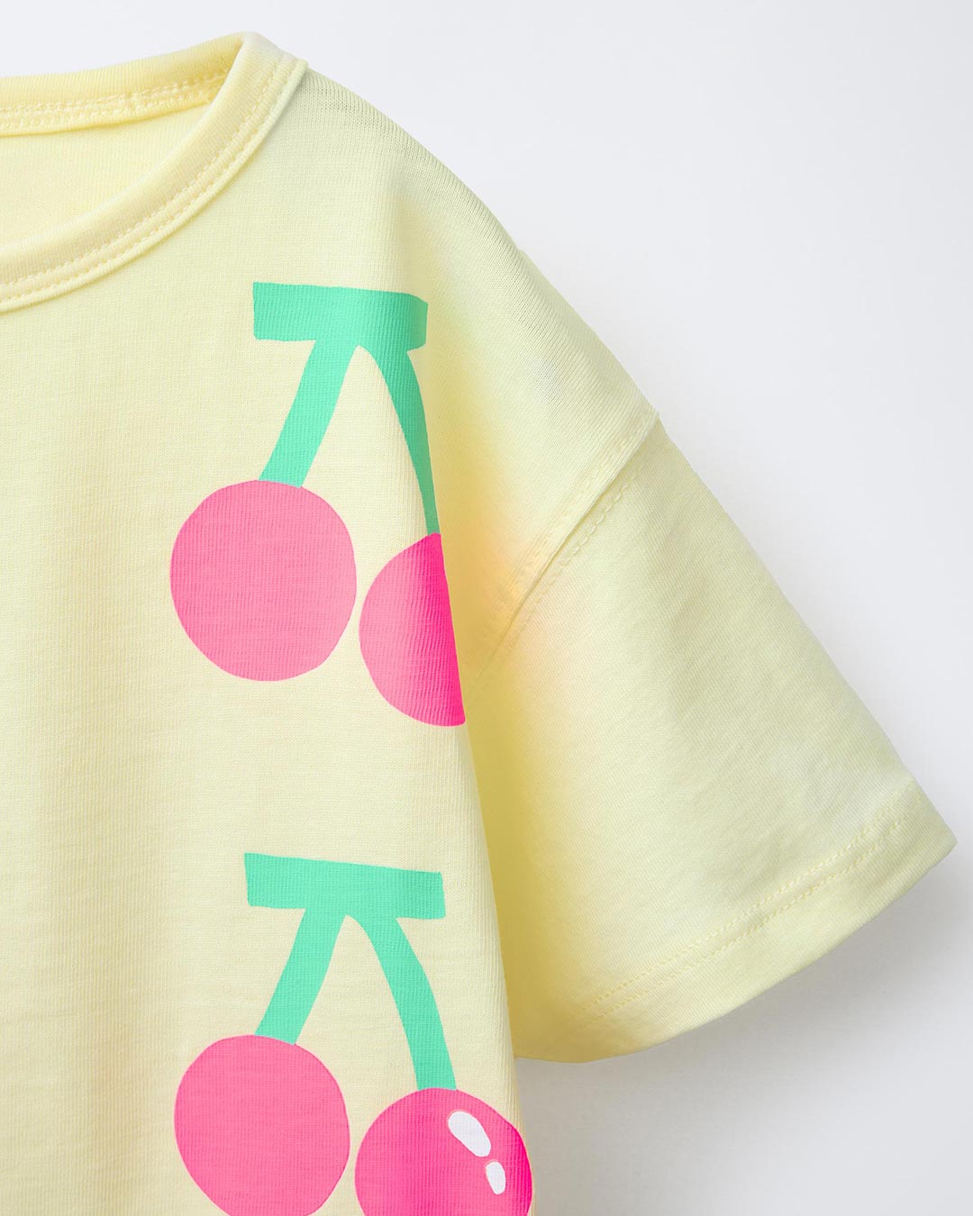 ZARA PASTEL YELLOW CHERRY PRINTED T-SHIRT