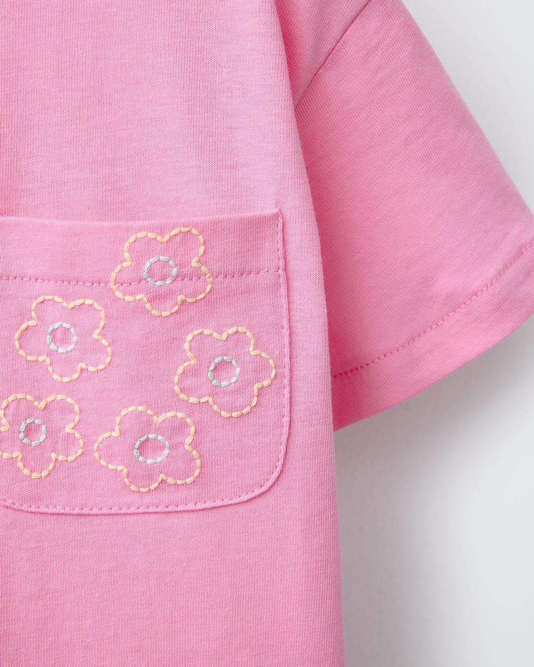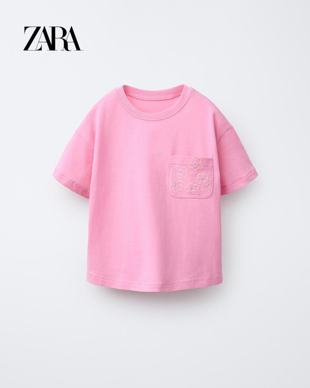 ZARA PINK EMBROIDERED POCKET T-SHIRT