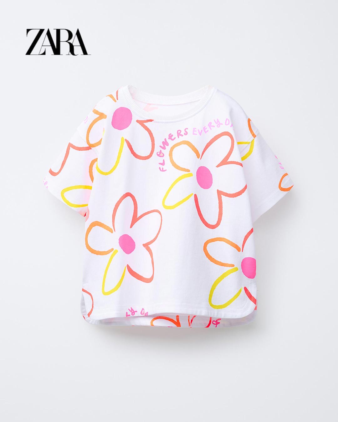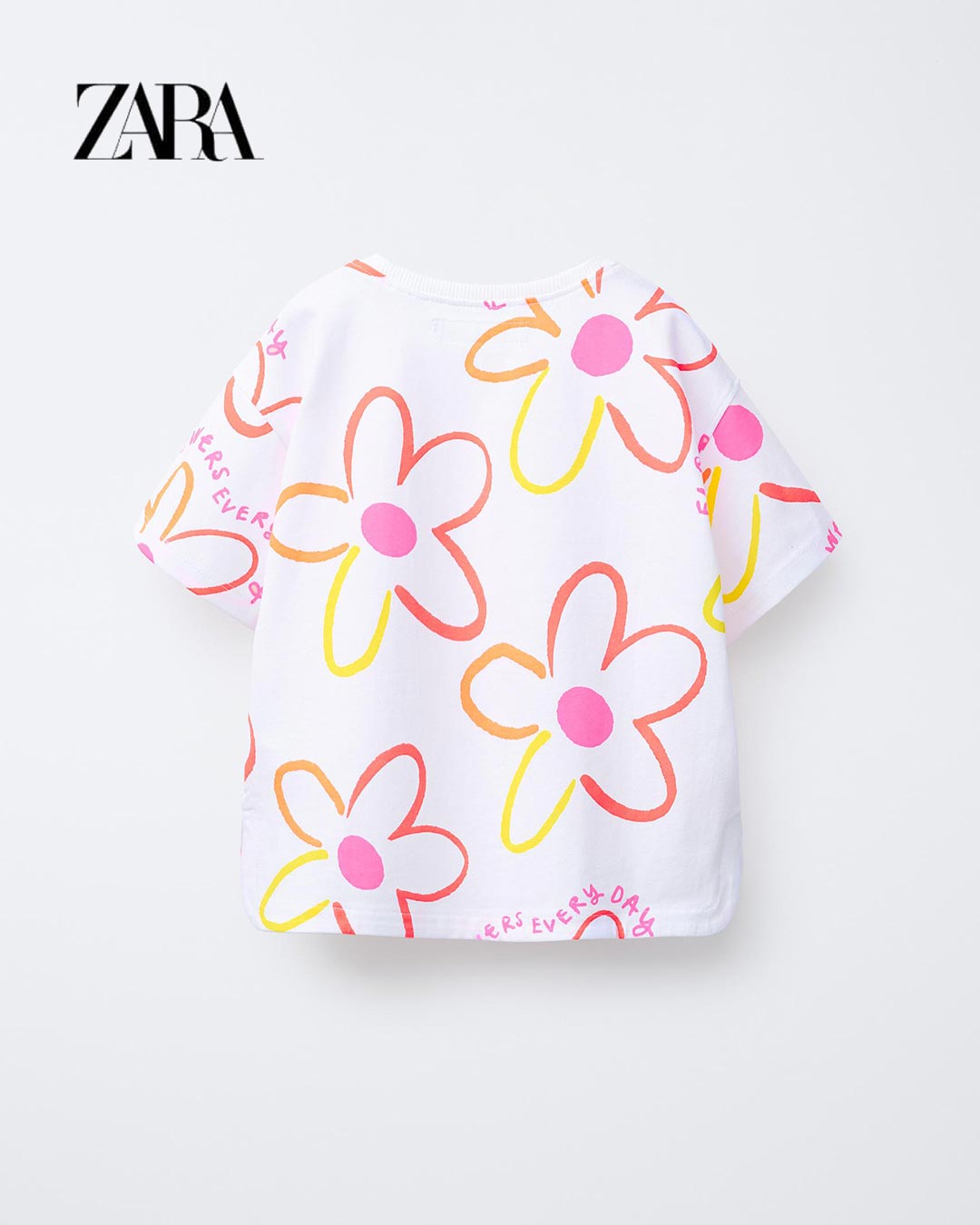 ZARA WHITE FLOWERS EVERY DAY T-SHIRT