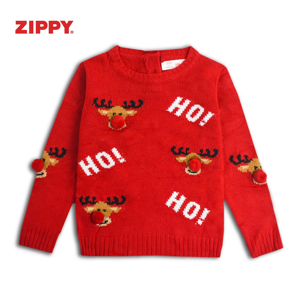 ZIPPY RED DEER POM POM SWEATER